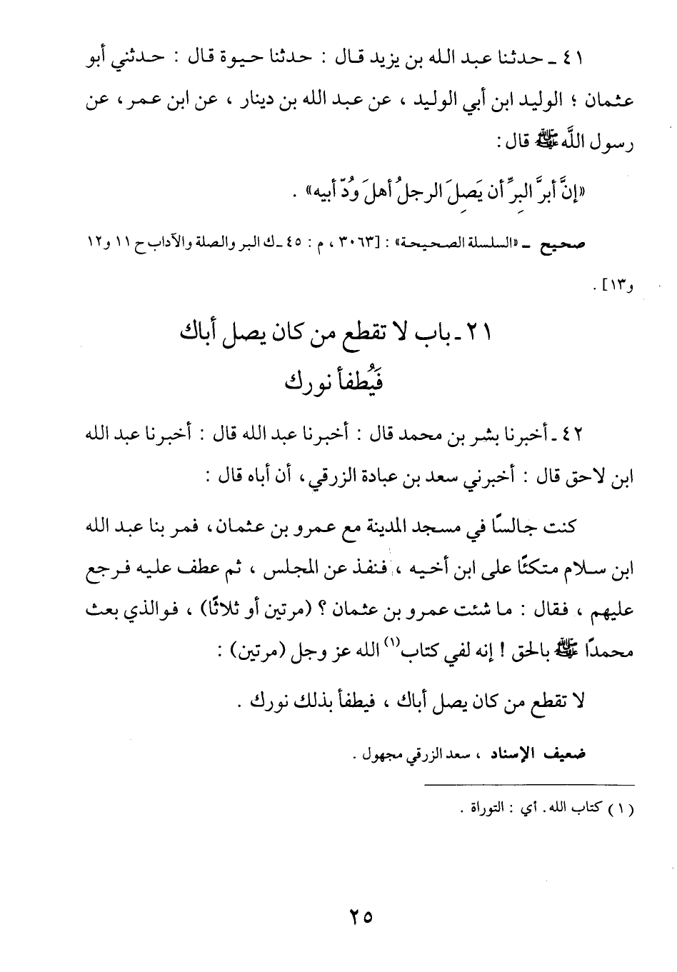 21- بَابُ لَا تَقْطَعْ مَنْ كَانَ يَصِلُ أَبَاكَ فيطفأ نورك