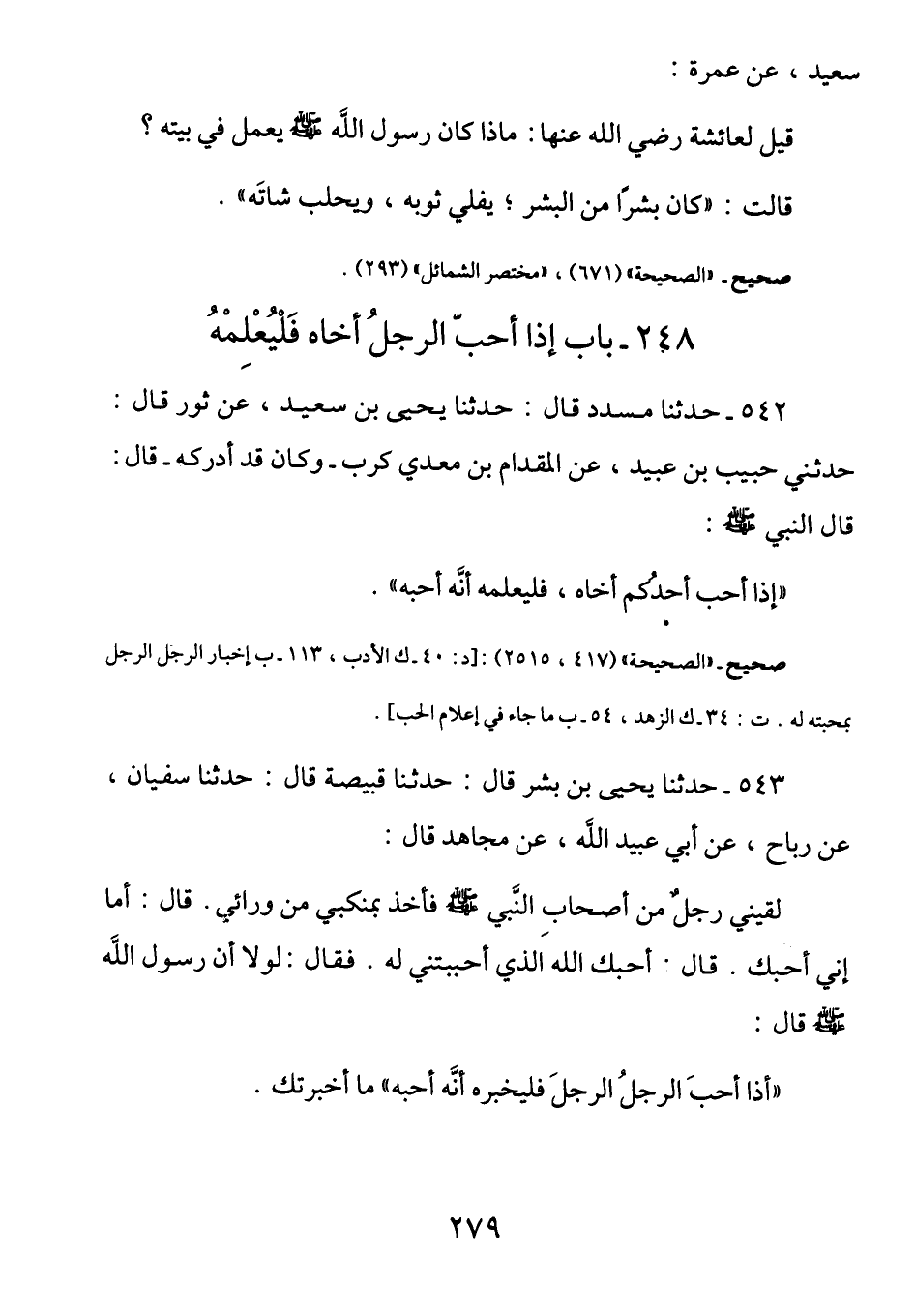 542 - عن المِقدَام بن مَعدي كَرِب رضي الله عنه قَالَ: قَالَ النَّبِيُّ صَلَّى اللهُ عَلَيْهِ وَسَلَّمَ: (إِذا أَحبَّ أَحدُكُم أَخاهُ فَليُعلِمهُ أَنهُ أَحبَّهُ)