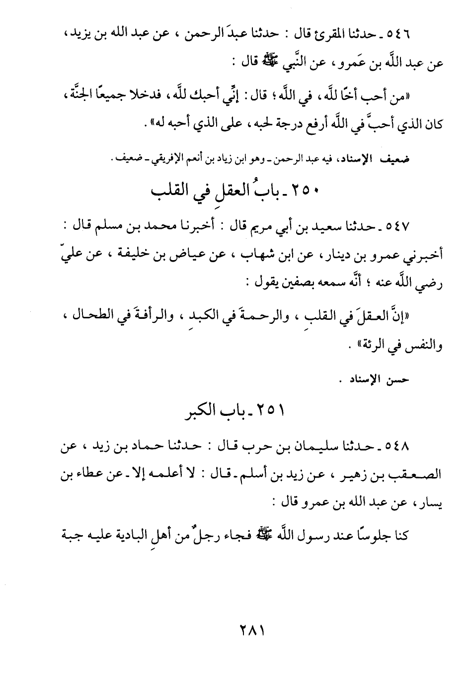 546 - عن عبد الله بن عمرو رضي الله عنهما عَنِ النَّبِيِّ صَلَّى اللهُ عَلَيْهِ وَسَلَّمَ قَالَ: (مَن أَحبَّ أَخًا لِلَّهِ، فِي اللَّهِ، قَالَ: إِنِّي أُحِبُك لِلَّهِ، فَدخَلا جَميعاً الجنَّة كَان الَّذِي أَحب فِي اللَّهِ أَرفَعَ دَرجةً لِحُبِهِ، عَلى الذّي أحبَّهُ لَه)