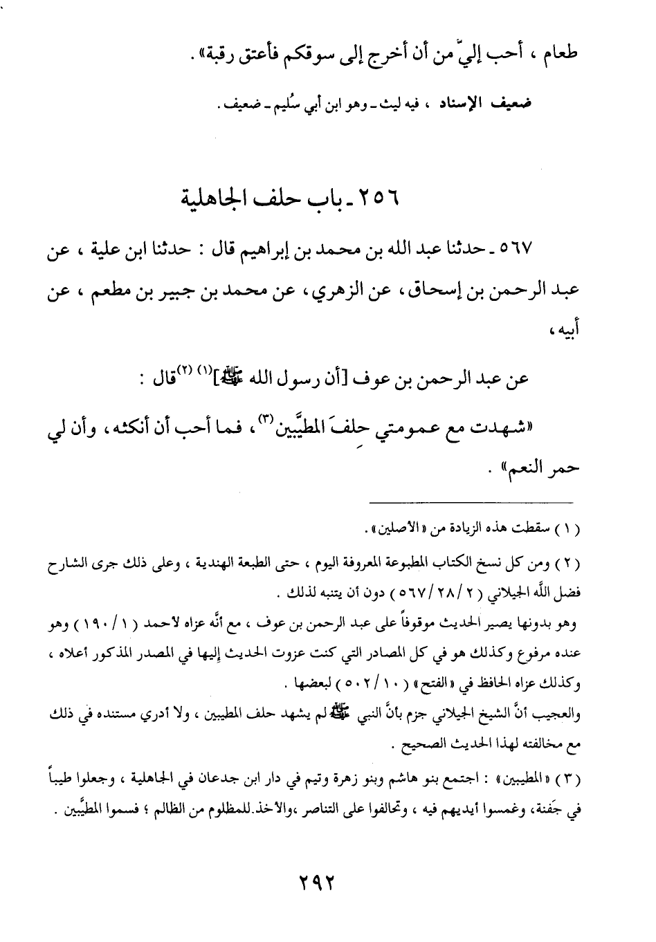567 - عن عبد الرحمن بن عوف رَضِيَ اللَّهُ عَنْهُ عَنِ النَّبِيِّ صَلَّى اللهُ عَلَيْهِ وَسَلَّمَ قَالَ: (شَهِدتُ مَع عُمومَتي حِلفَ المُطيِّبينَ، فَما أُحِبُ أنْ أَنكُثَهُ وأَنَّ لِي حُمْرَ النَّعَمِ) .