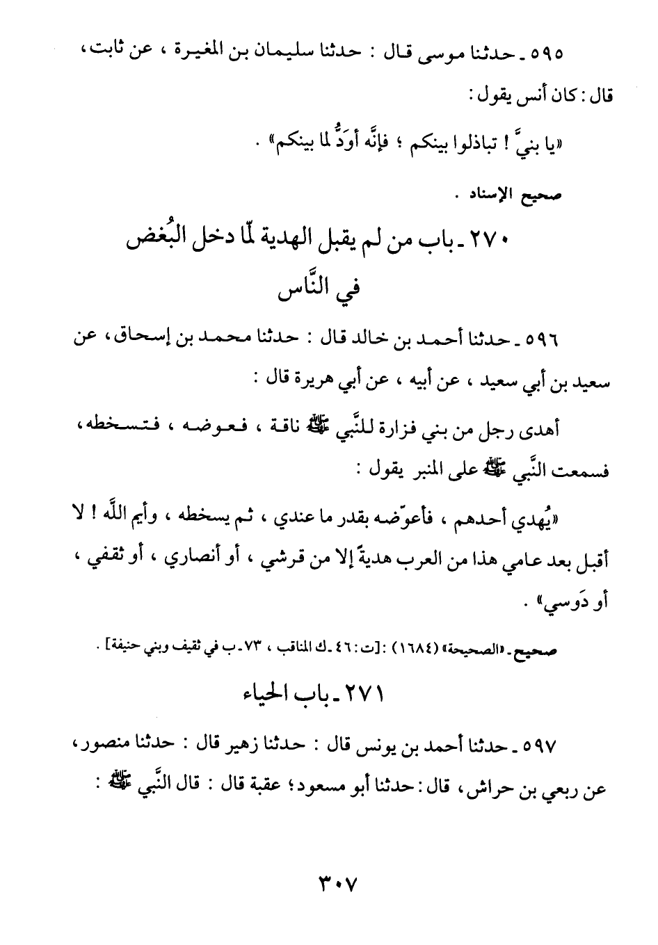 270- بَابُ مَنْ لَمْ يَقْبَلِ الْهَدِيَّةَ لمَّا دَخل البُغض في الناس