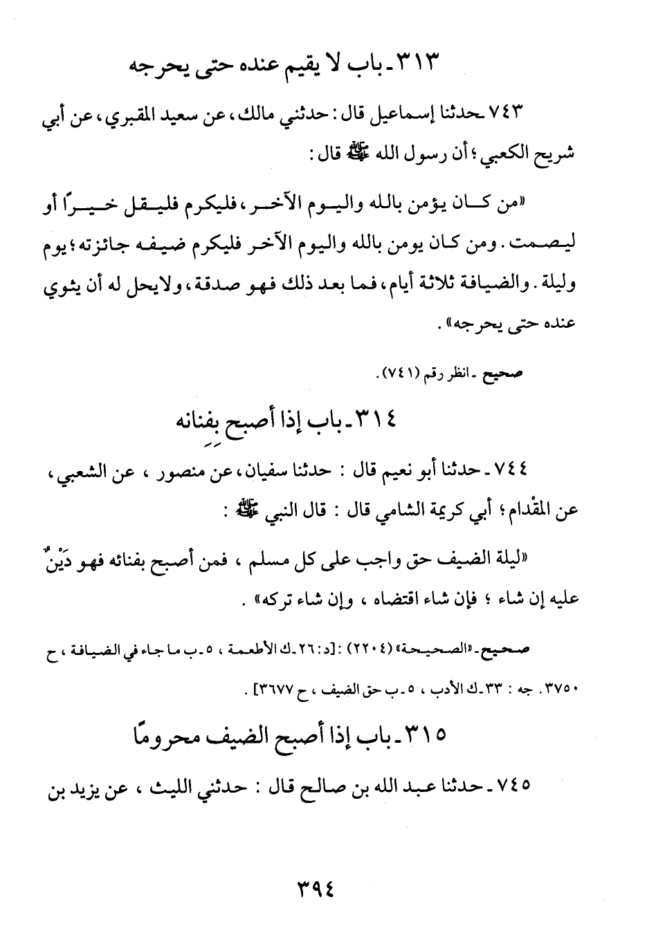 313- باب لا يقيم عنده حتى يحرجه