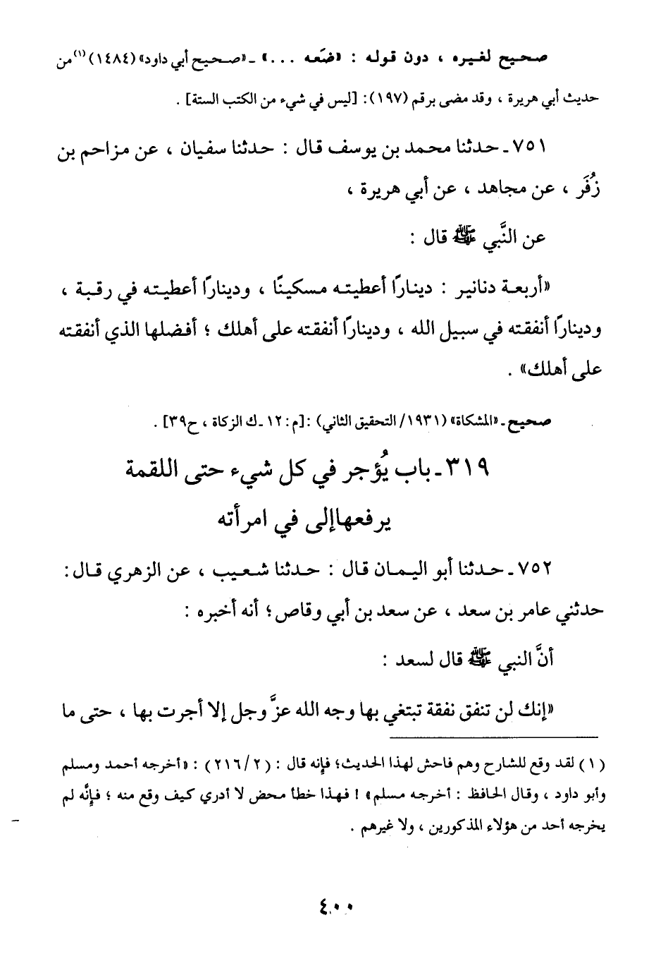 751 - عَنْ أَبِي هُرَيْرَةَ رَضِيَ اللَّهُ عَنْهُ عَنِ النَّبِيِّ صَلَّى اللهُ عَلَيْهِ وَسَلَّمَ قَالَ: (أَرْبَعَةُ دَنَانِيرَ دِينَارًا أَعْطَيْتَهُ مِسْكِينًا وَدِينَارًا أَعْطَيْتَهُ فِي رَقَبَةٍ وَدِينَارًا أَنْفَقْتَهُ فِي سَبِيلِ اللَّهِ وَدِينَارًا أَنْفَقْتَهُ عَلَى أَهْلِكَ أَفْضَلُهَا الَّذِي أَنْفَقْتَهُ على أهلك)