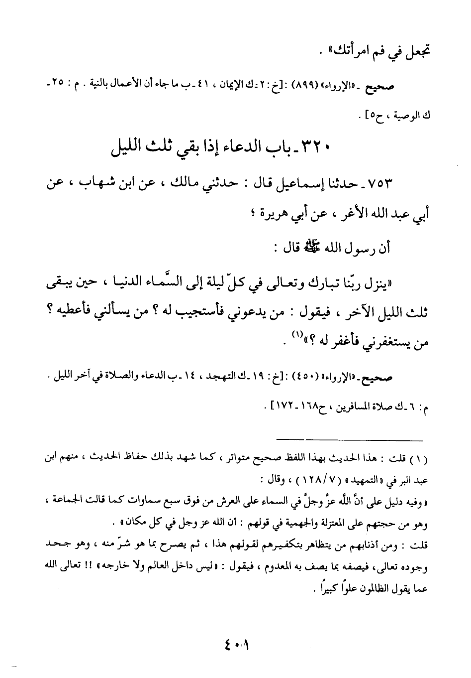 صحيح ـ «الإرواء» (450) : (خ: 19ـ ك التهجد , 14ـ ب الدعاء والصلاة في آخر الليل. م: 6ـ ك صلاة المسافرين , ح 168ـ 172) .