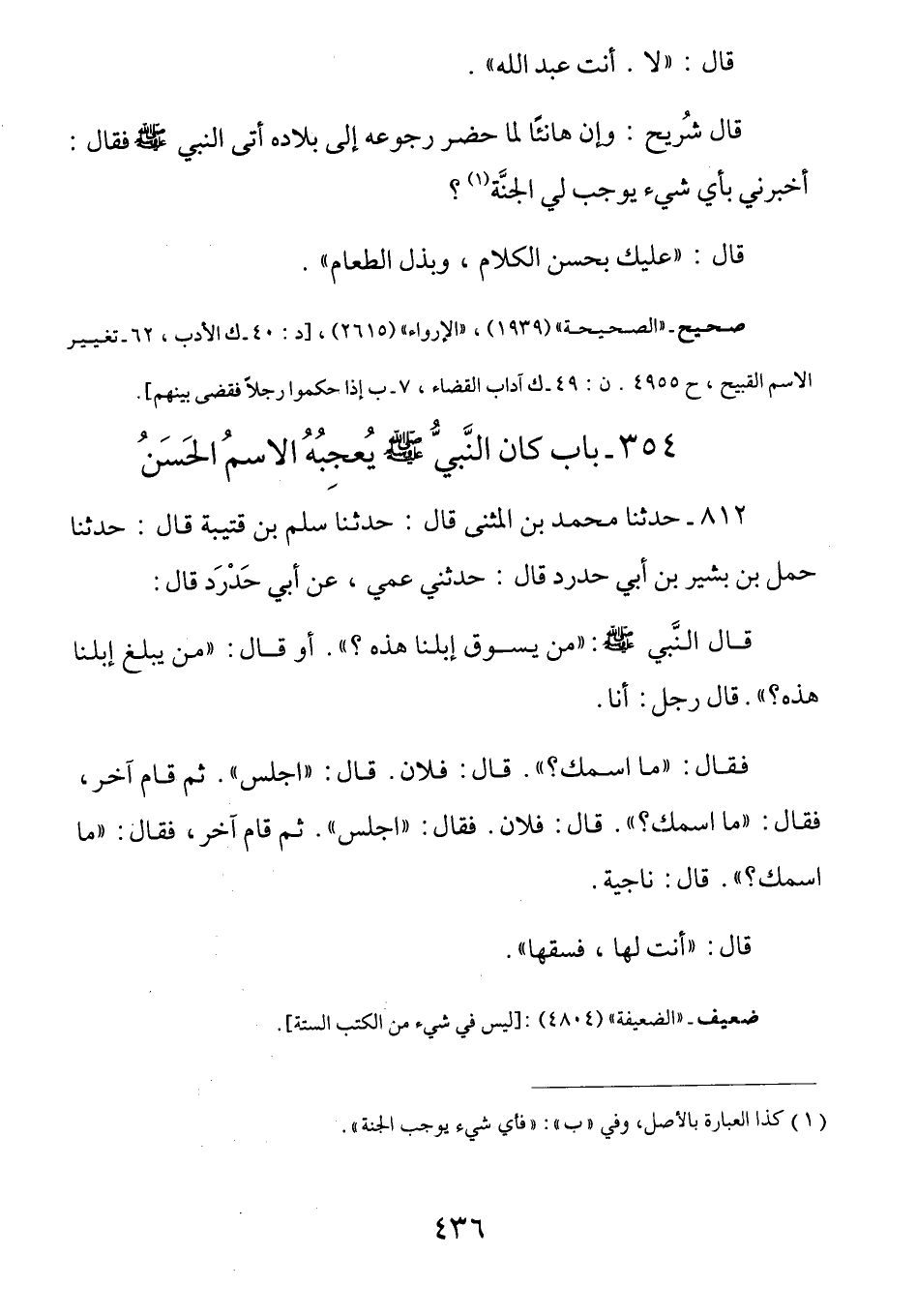 354- بَابُ كَانَ النَّبِيُّ صَلَّى اللهُ عَلَيْهِ وَسَلَّمَ يعجبه الاسم الحسن