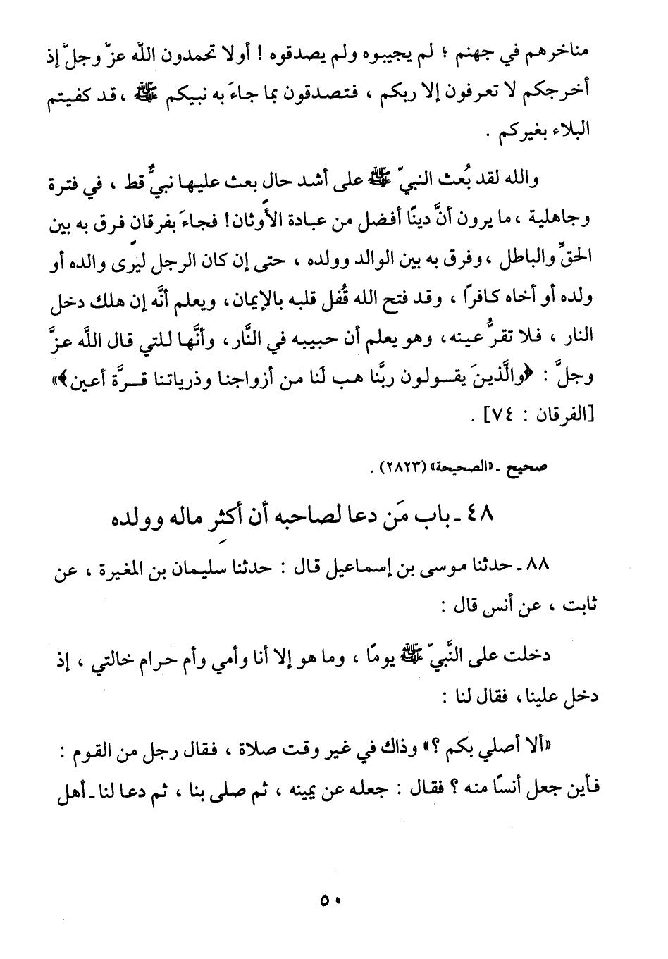48- بَابُ مَنْ دَعَا لِصَاحِبِهِ أَنْ أكثِر مَالَهُ وولده