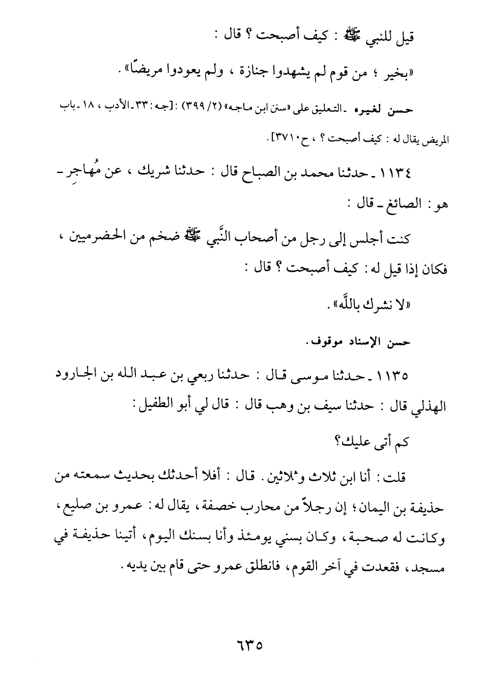 حسن لغيره ـ التعليق على «سنن ابن ماجه» (2/399) : [جه: 33 ـ الأدب , 18 ـ باب المريض يقال له: كيف أصبحت؟ , ح 3710]
