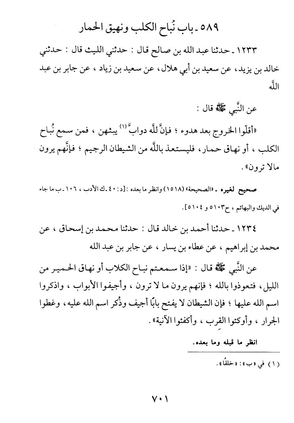 589- باب نباح الكلب ونهيق الحمار