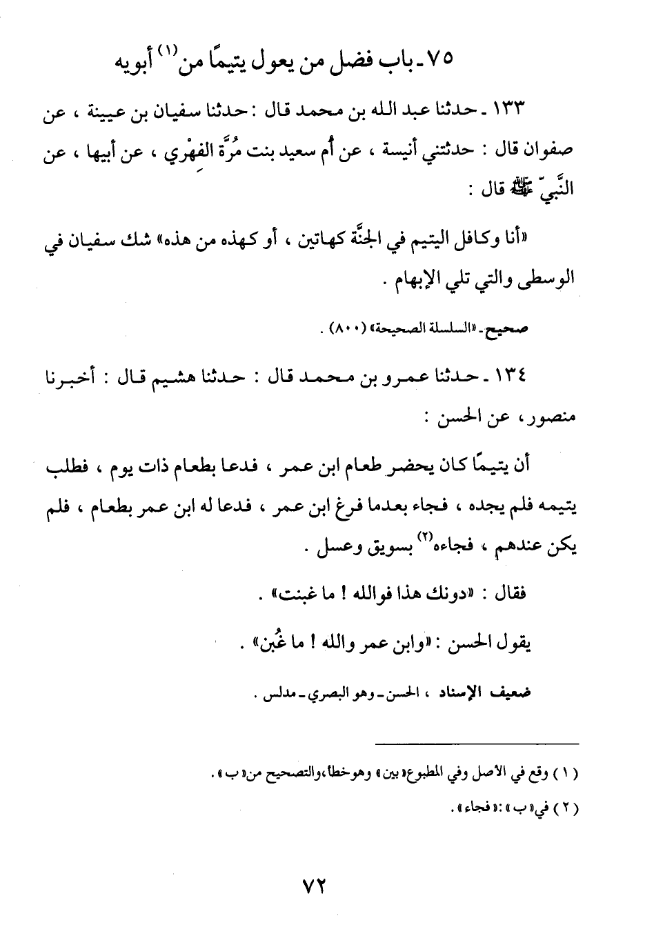 75- باب فضل من يعول يتيما من بين أبويه