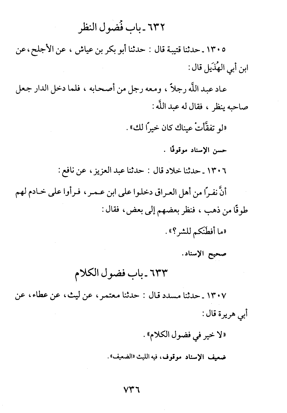 1307 - (ث 379) عن أبي هريرة رضي الله عنه قال لا خير في فضول الكلام
