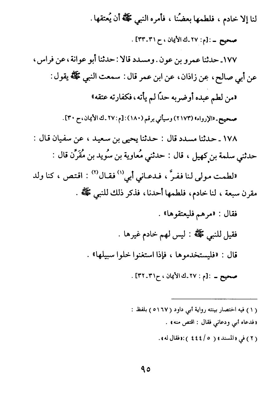 177 - عن ابن عمر رضي الله عنهما قال سمعت النبي صلى الله عليه يقول: (من لطَم عبْدَهُ أو ضبه حداً لم يأتِهِ، فكفَّارَتُهُ عِتْقُهُ) .