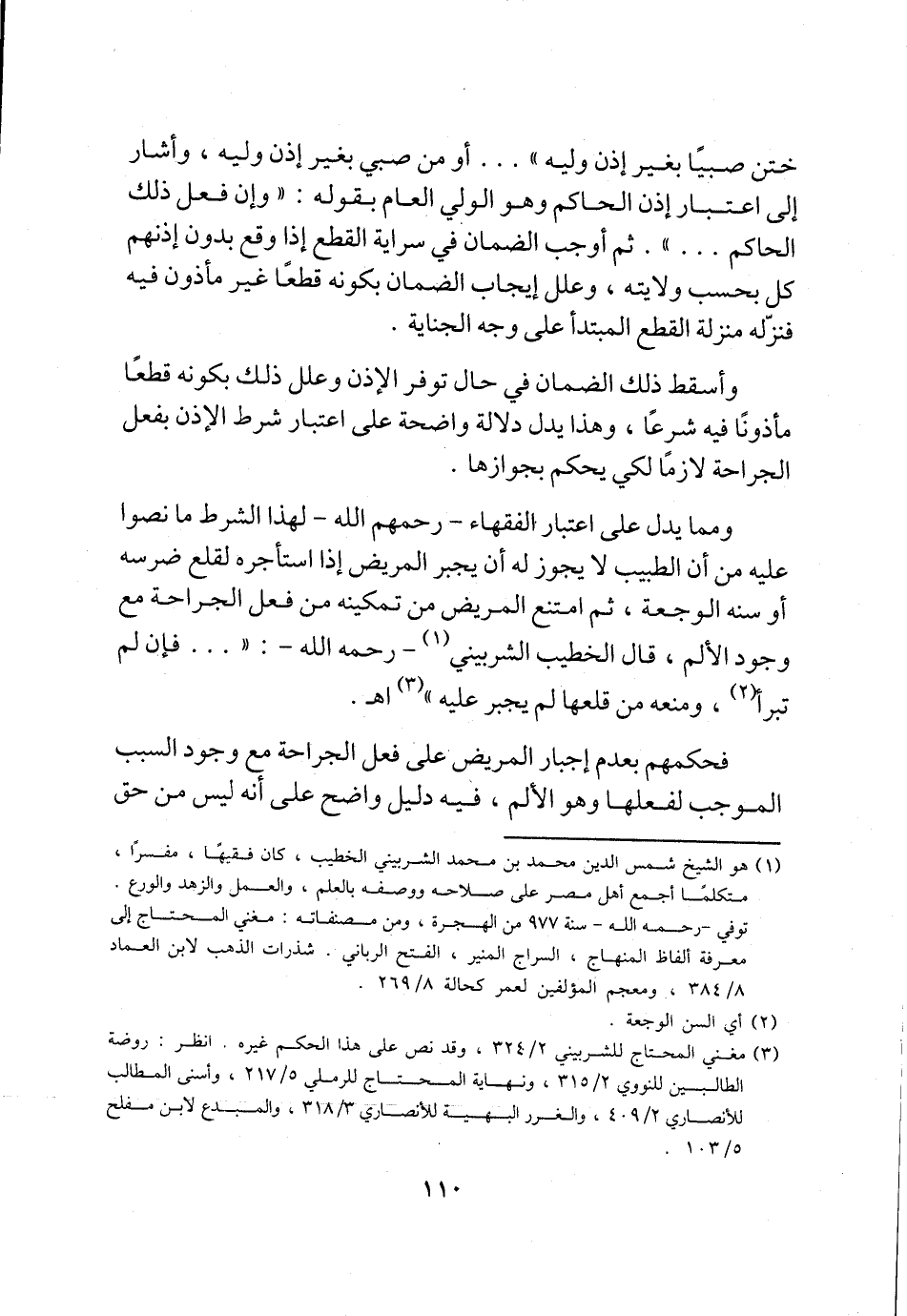 وأسقط ذلك الضمان في حال توفر الإذن وعلل ذلك بكونه قطعًا مأذونًا فيه شرعًا، وهذا يدل دلالة واضحة على اعتبار شرط الإذن بفعل الجراحة لازمًا لكي يحكم بجوازها.