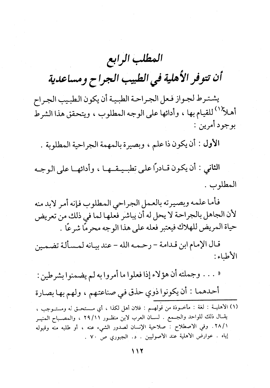 المطلب الرابع أن تتوفر الأهلية في الطبيب الجراح ومساعدية