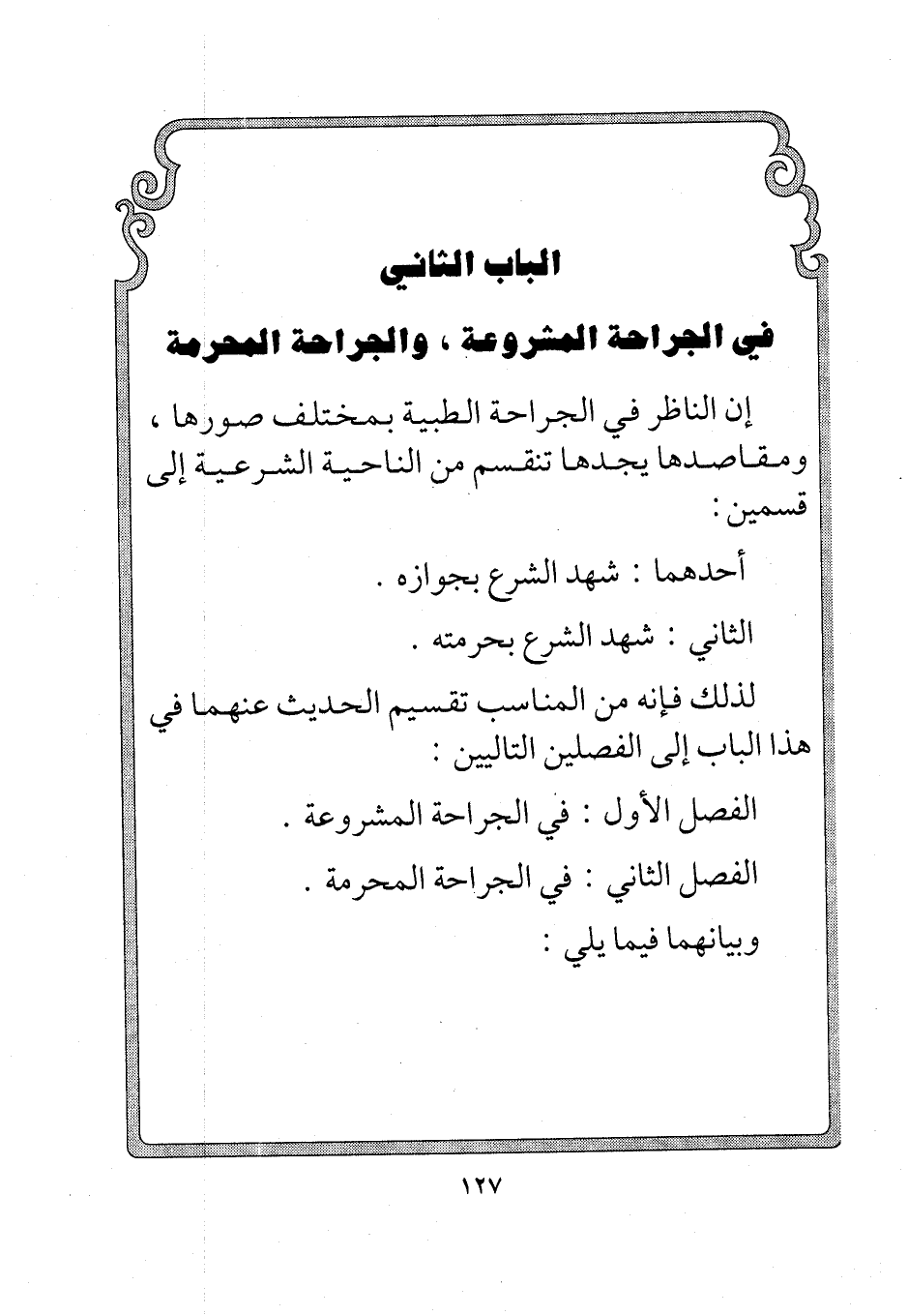 الباب الثاني في الجراحة المشروعة, والجراحة المحرمة