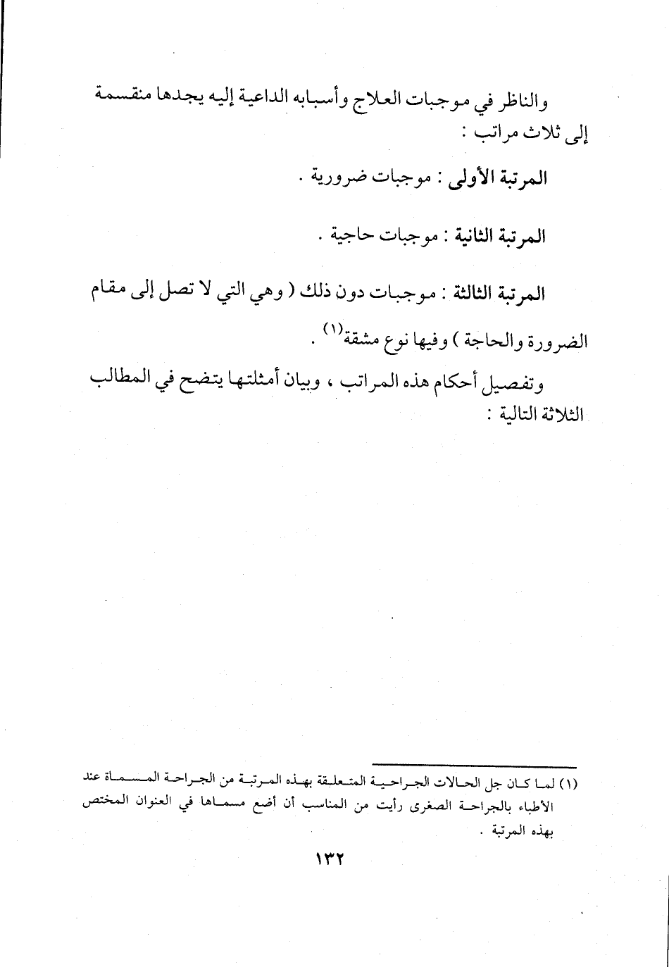 (¬1) لما كان جل الحالات الجراحية المتعلقة بهذه المرتبة من الجراحة المسماة عند الأطباء بالجراحة الصغرى رأيت من المناسب أن أضع مسماها في العنوان المختص بهذه المرتبة.