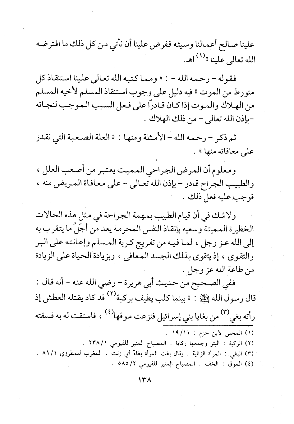 ومعلوم أن المرض الجراحي المميت يعتبر من أصعب العلل، والطبيب الجراح قادر -بإذن الله تعالى- على معافاة المريض منه، فوجب عليه فعل ذلك.