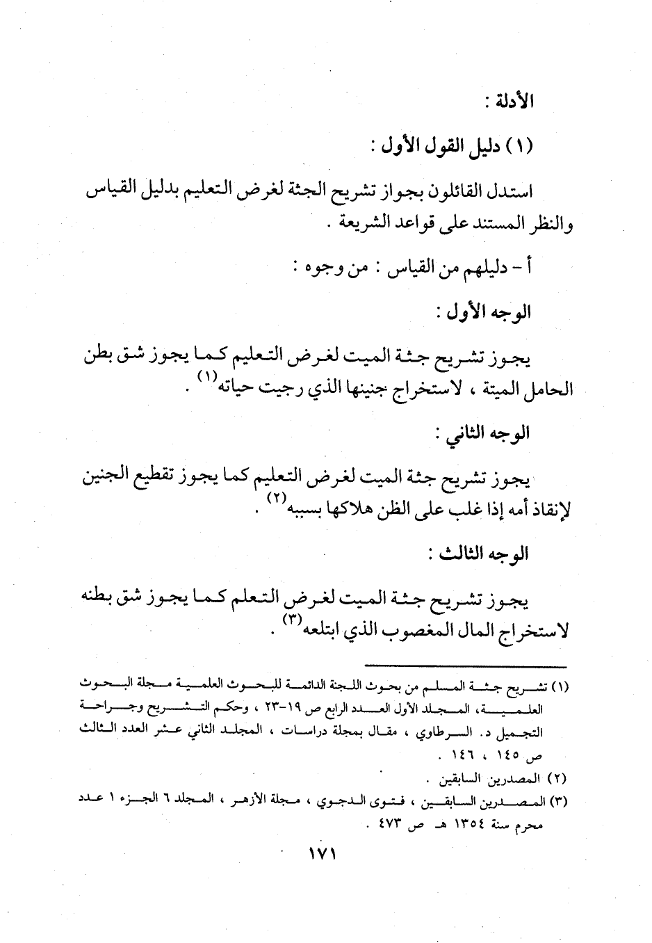 (¬1) تشريح جثة المسلم من بحوث اللجنة الدائمة للبحوث العلمية مجلة البحوث العلمية، المجلد الأول العدد الرابع ص 19 - 23، وحكم التشريح وجراحة التجميل د. السرطاوي، مقال بمجلة دراسات، المجلد الثاني عشر العدد الثالث ص 145، 146.