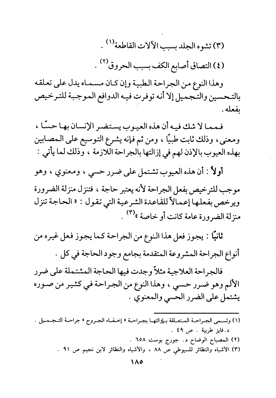 (¬1) وتسمى الجراحة المتعلقة بإزالتها بجراحة "إخفاء الجروح" جراحة التجميل. د. فايز طربية. ص 49.