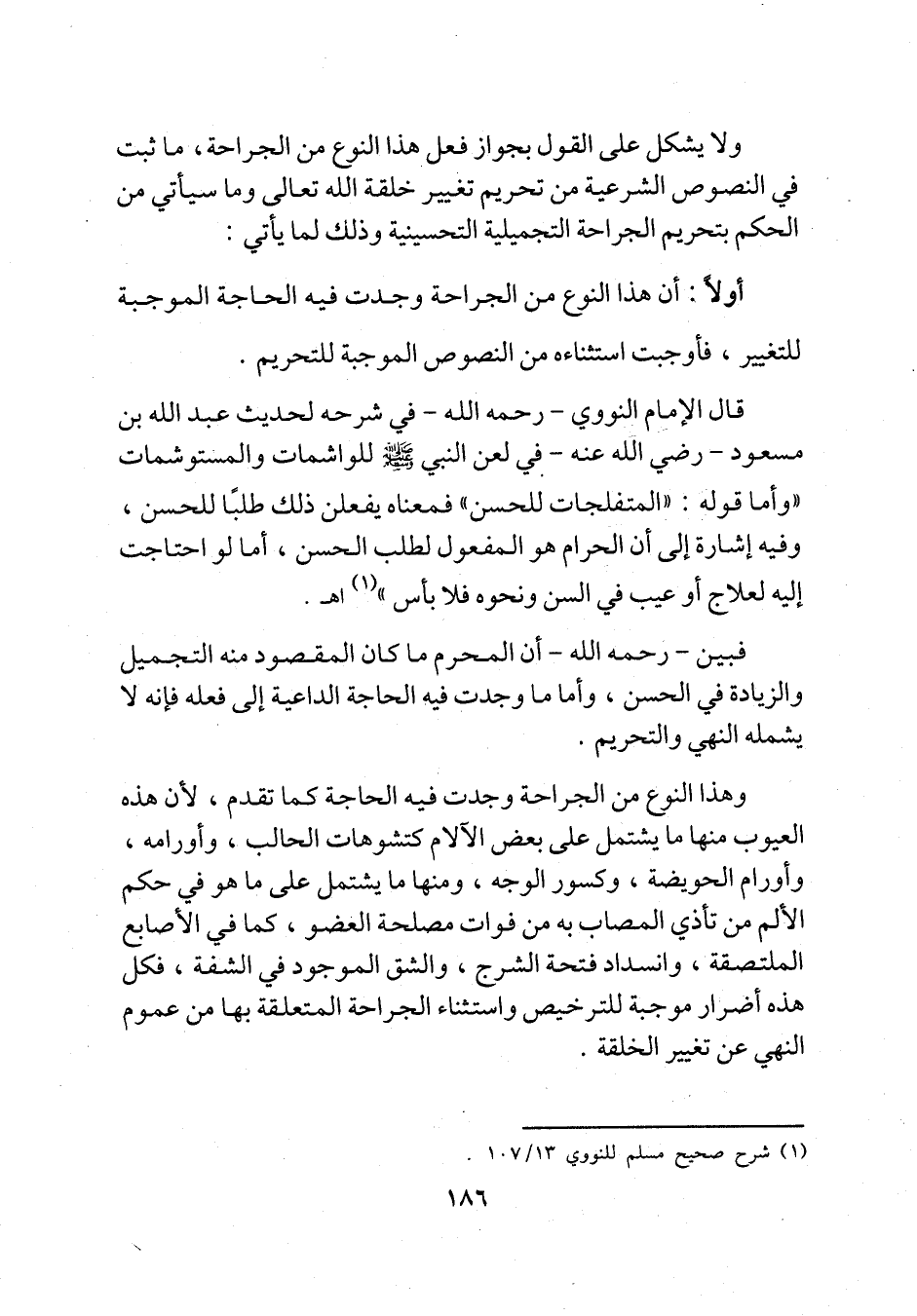 أولأ: أن هذا النوع من الجراحة وجدت فيه الحاجة الموجبة للتغيير، فأوجبت استثناءه من النصوص الموجبة للتحريم.