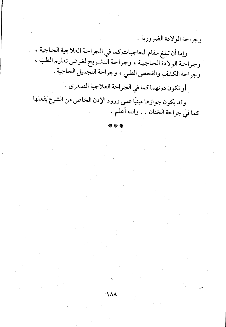وقد يكون جوازها مبنيًا على ورود الإذن الخاص من الشرع بفعلها كما في جراحة الختان .. والله أعلم.