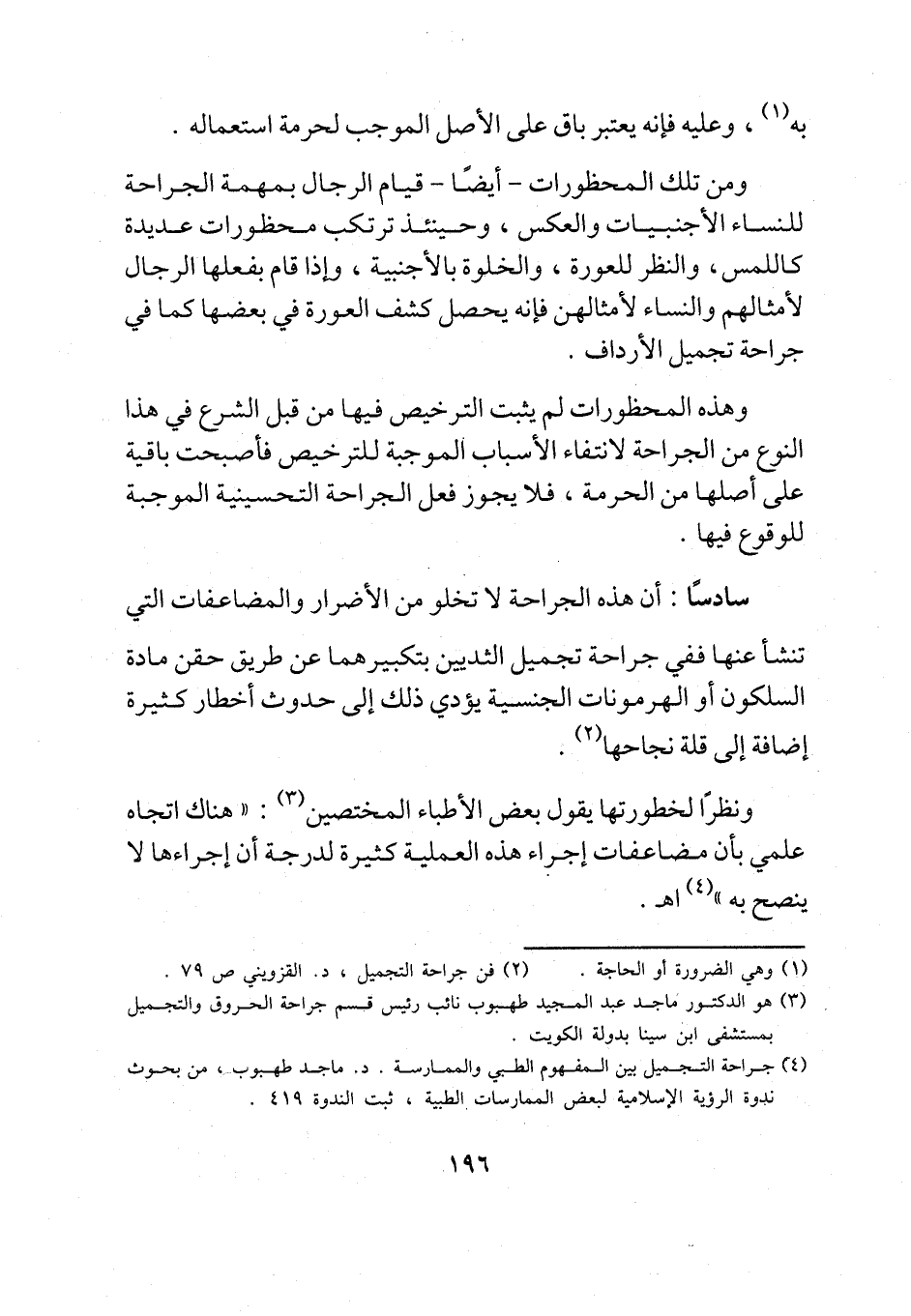 (¬4) جراحة التجميل بين المفهوم الطبي والممارسة. د. ماجد طهبوب، من بحوث ندوة الرؤية الإسلامية لبعض الممارسات الطبية، ثبت الندوة 419.