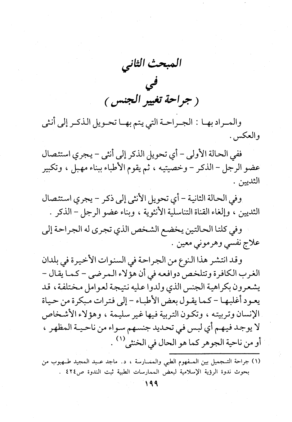 المبحث الثاني في (جراحة تغيير الجنس)
