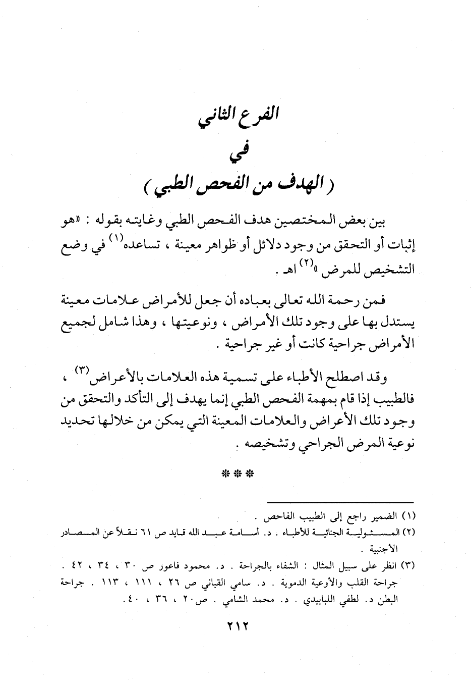 (¬3) انظر على سبيل المثال: الشفاء بالجراحة. د. محمود فاعور ص 30، 34، 42. جراحة القلب والأوعية الدموية. د. سامي القباني ص 26، 111، 113. جراحة البطن د. لطفي اللبابيدي. د. محمد الشامي. ص 20، 36، 40.