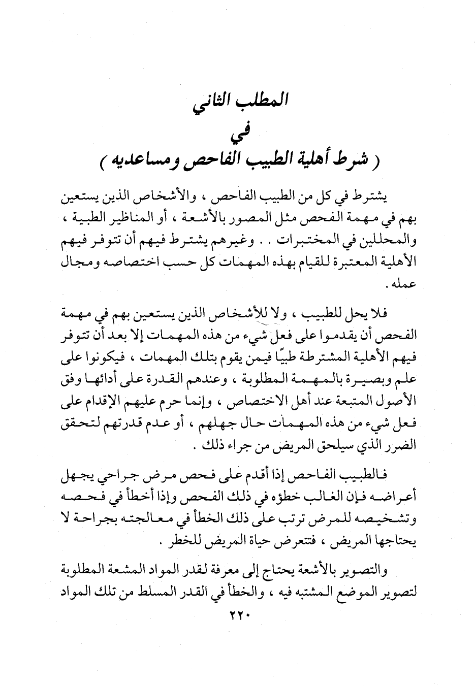 المطلب الثاني في (شرط أهلية الطبيب الفاحص ومساعديه)