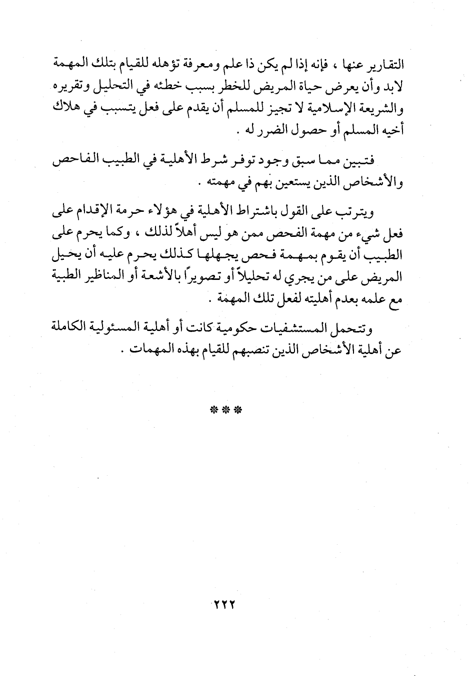 وتتحمل المستشفيات حكومية كانت أو أهلية المسئولية الكاملة عن أهلية الأشخاص الذين تنصبهم للقيام بهذه المهمات.