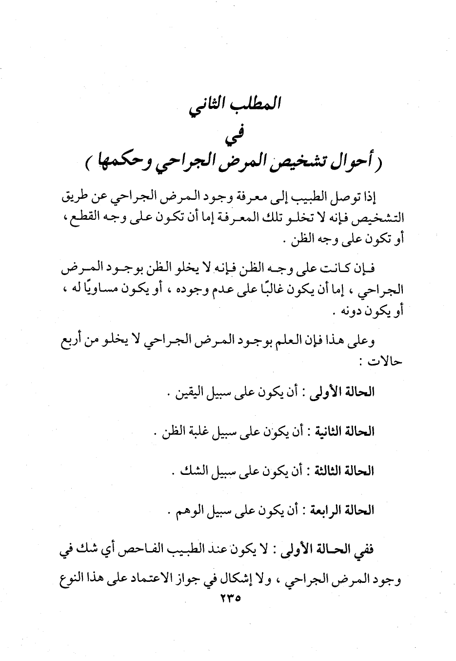 المطلب الثاني في (أحوال تشخيص المرض الجراحي وحكمها)
