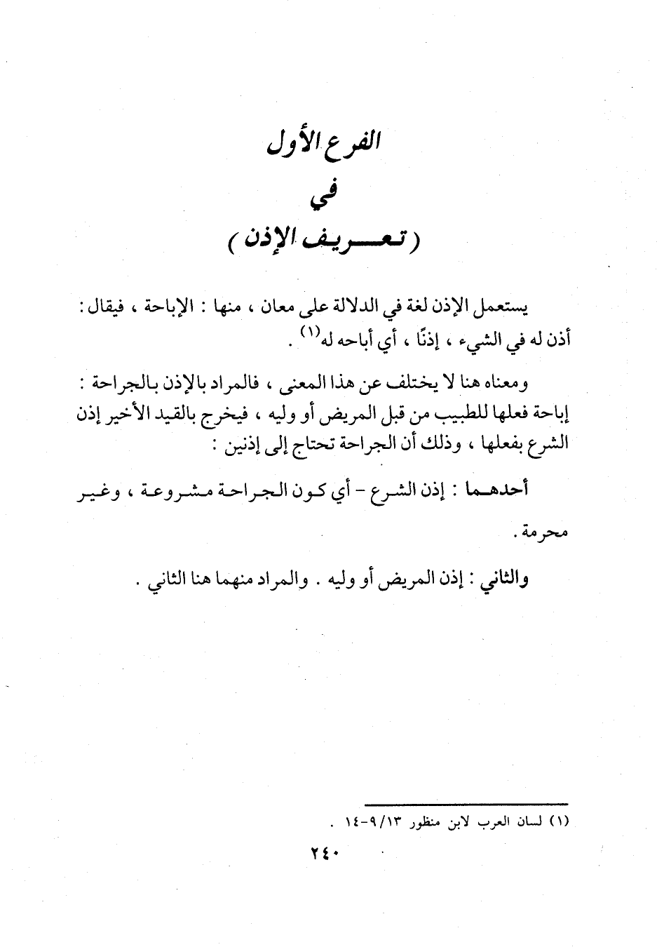 الفرع الأول في (تعريف الإذن)