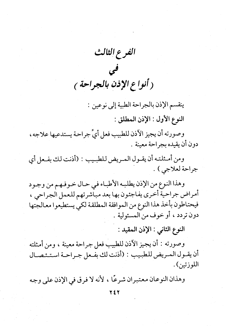 الفرع الثالث في (أنواع الإذن بالجراحة)