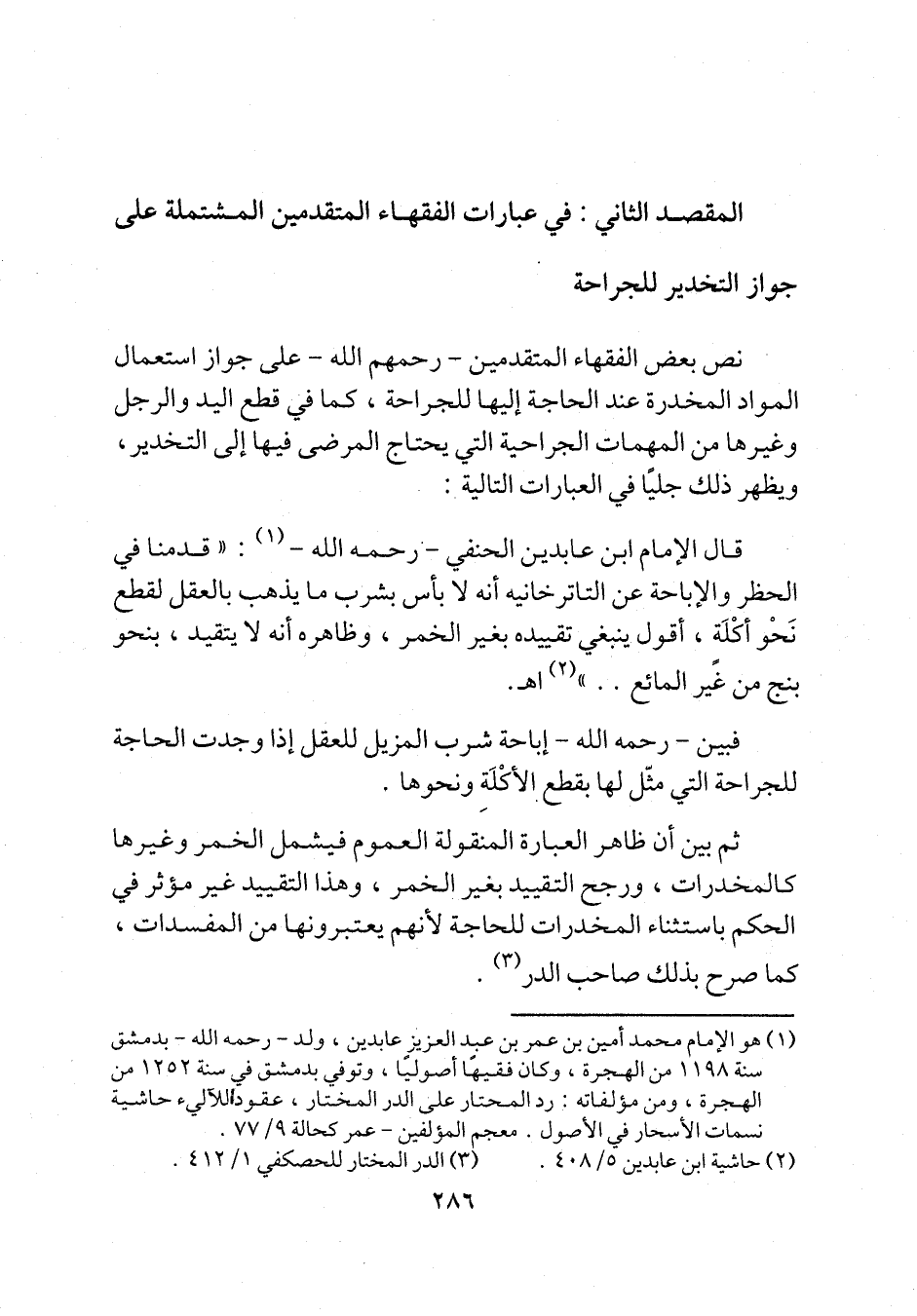 المقصد الثاني: في عبارات الفقهاء المتقدمين المشتملة على جواز التخدير للجراحة