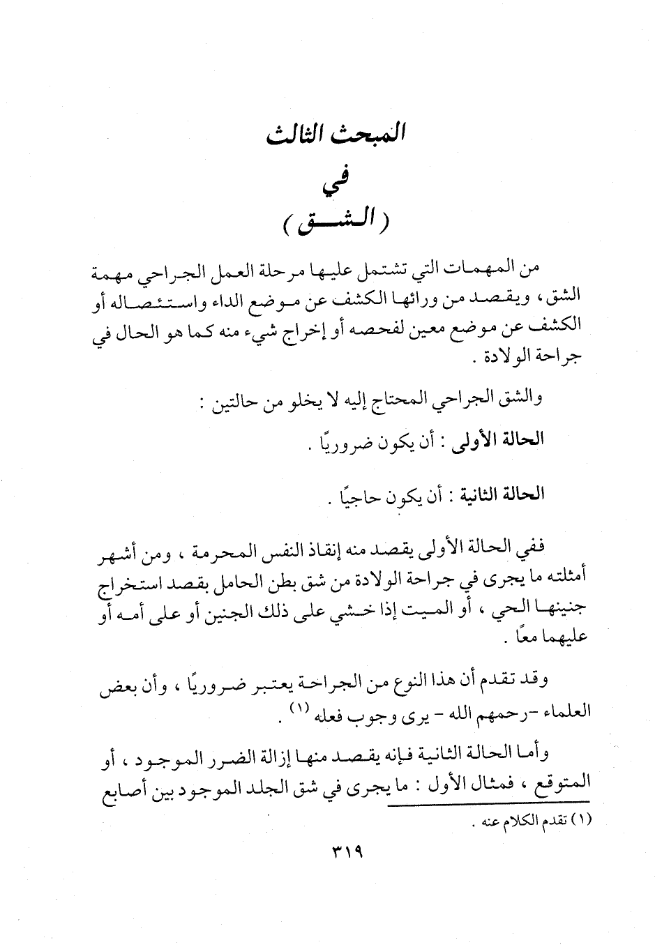 وقد تقدم أن هذا النوع من الجراحة يعتبر ضروريًا، وأن بعض العلماء -رحمهم الله- يرى وجوب فعله (¬1).