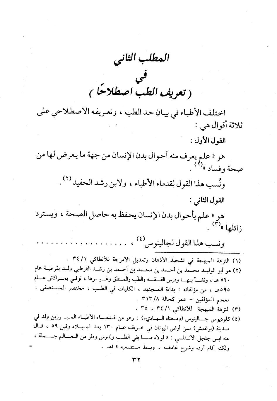 المطلب الثاني في (تعريف الطب اصطلاحا)