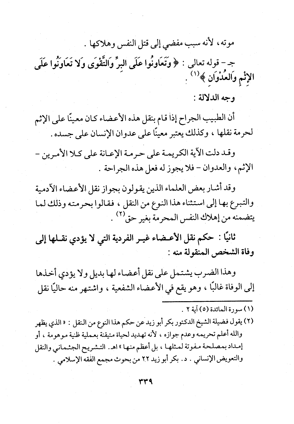 ثانيًا: حكم نقل الأعضاء غير الفردية التي لا يؤدي نقلها إلى وفاة الشخص المنقولة منه: