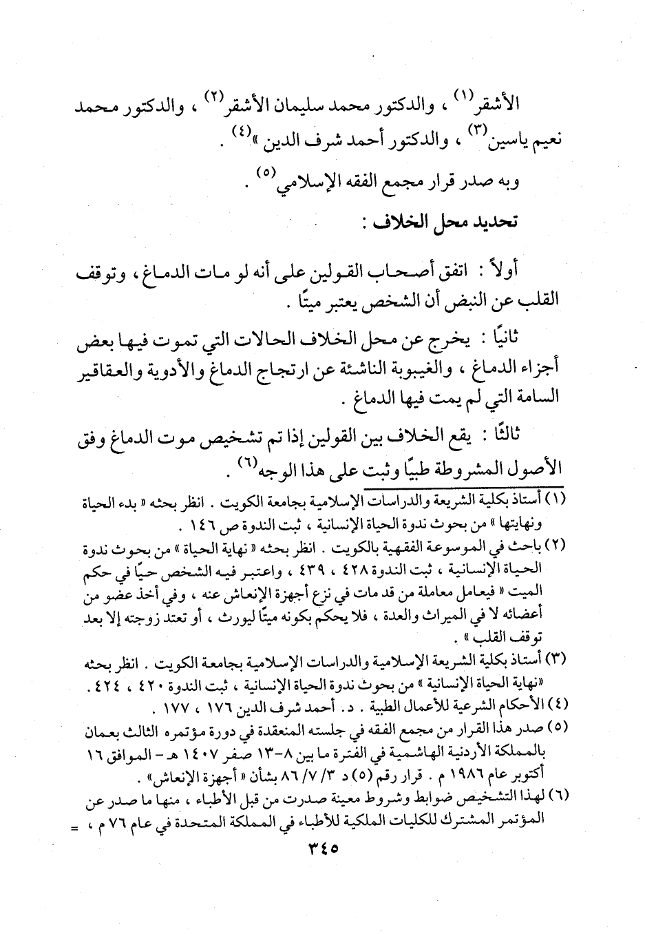 (¬1) أستاذ بكلية الشريعة والدراسات الإسلامية بجامعة الكويت. انظر بحثه "بدء الحياة ونهايتها" من بحوث ندوة الحياة الإنسانية، ثبت الندوة ص 146.