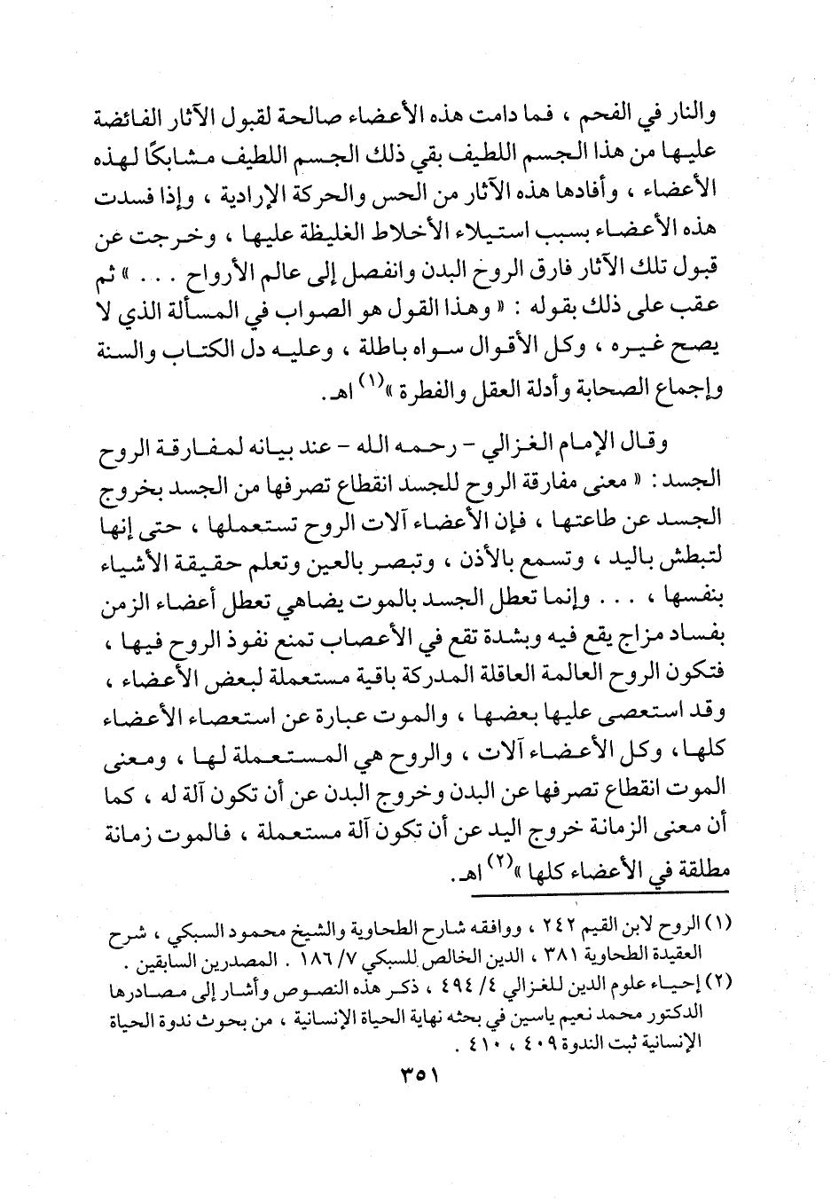 (¬1) الروح لابن القيم 242، ووافقه شارح الطحاوية والشيخ محمود السبكي، شرح العقيدة الطحاوية 381، الدين الخالص للسبكي 7/ 186. المصدرين السابقين.