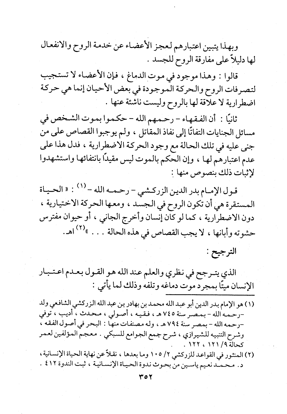 (¬2) المنثور في القواعد للزركشي 2/ 105 وما بعدها، نقلاً عن نهاية الحياة الإنسانية، د. محمد نعيم ياسين من بحوث ندوة الحياة الإنسانية، ثبت الندوة 412.