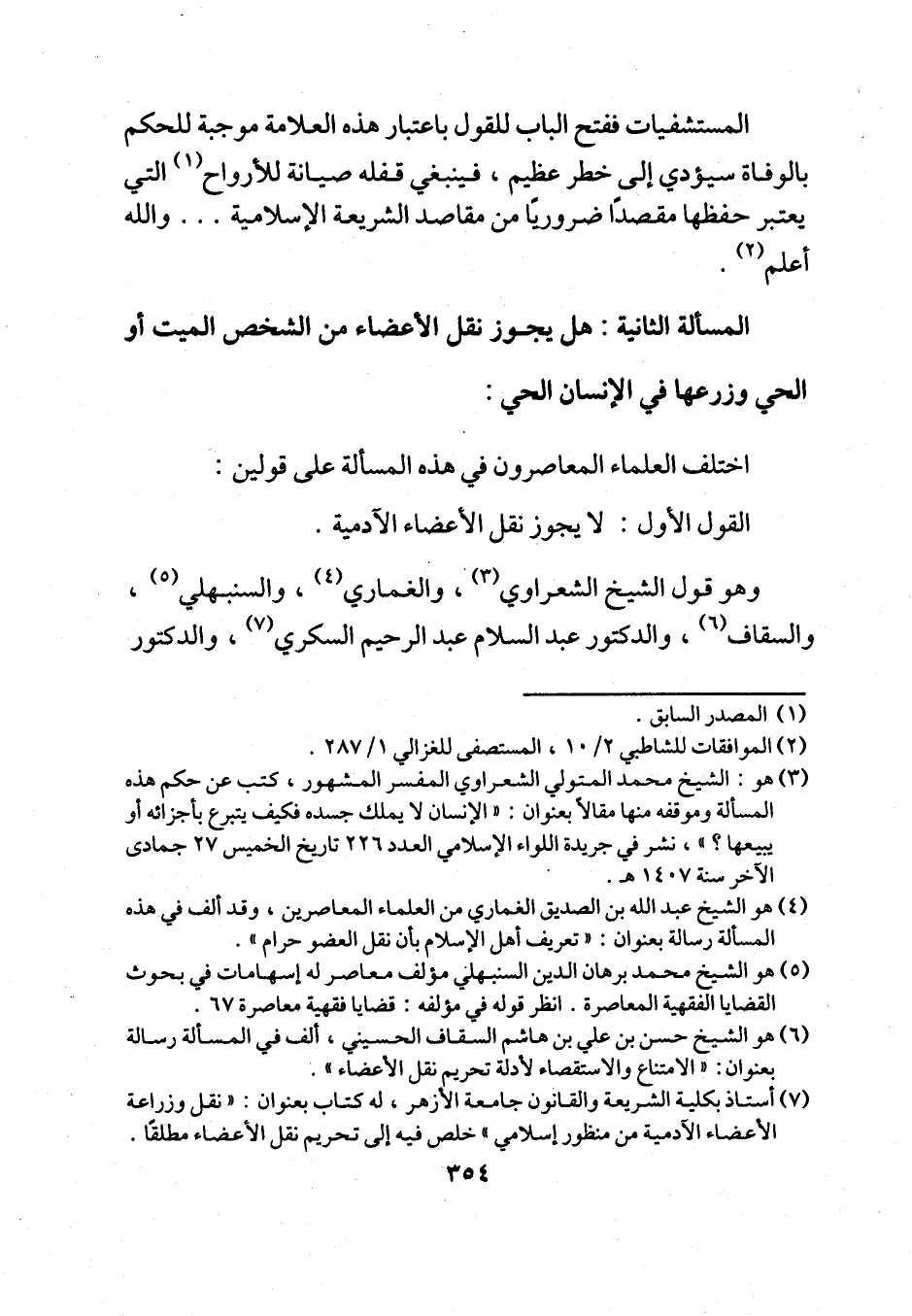 (¬3) هو: الشيخ محمد المتولي الشعراوي المفسر المشهور، كتب عن حكم هذه المسألة وموقفه منها مقالاً بعنوان: "الإنسان لا يملك جسده فكيف يتبرع بأجزائه أو يبيعها؟ "، نشر في جريدة اللواء الإسلامي العدد 226 تاريخ الخميس 27 جمادى الآخر سنة 1407 هـ.