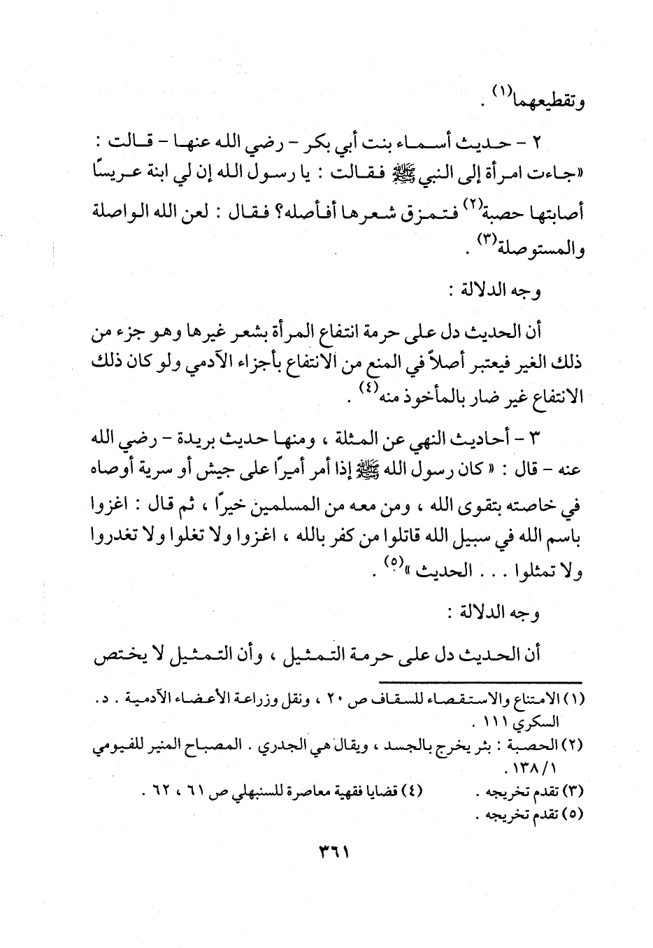 أن الحديث دل على حرمة انتفاع المرأة بشعر غيرها وهو جزء من ذلك الغير فيعتبر أصلاً في المنع من الانتفاع بأجزاء الآدمي ولو كان ذلك الانتفاع غير ضار بالمأخوذ منه (¬4).