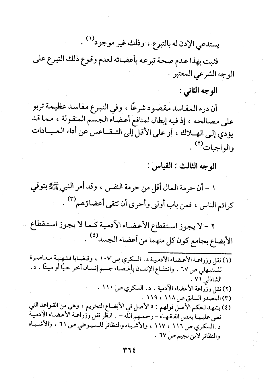 (¬1) نقل وزراعة الأعضاء الآدمية د. السكري ص 107، وقضايا فقهية معاصرة للسنبهلي ص 67، وانتفاع الإنسان بأعضاء جسم إنسان آخر حيًا أو ميتًا. د. الشاذلي 71.