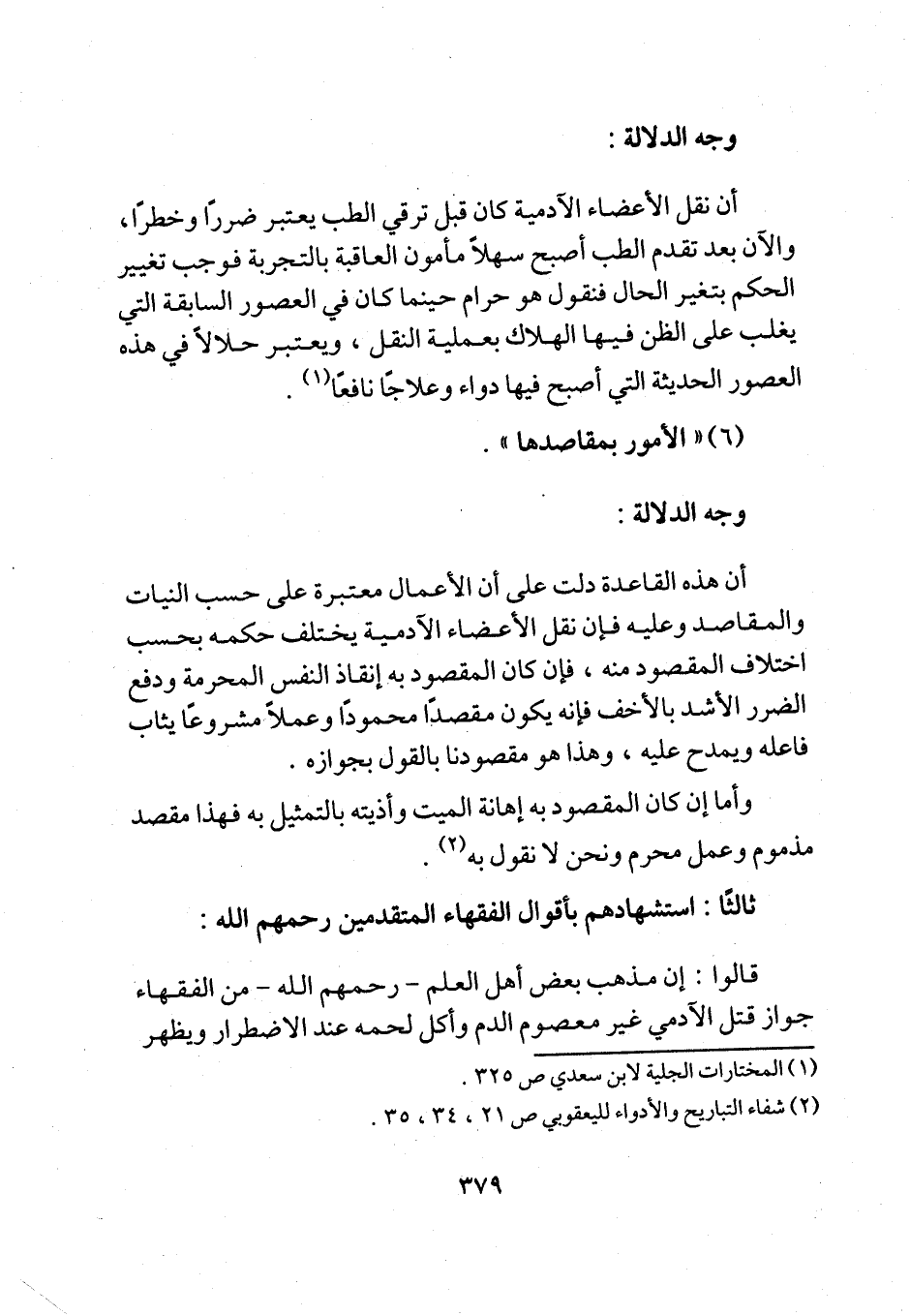 أن نقل الأعضاء الآدمية كان قبل ترقي الطب يعتبر ضررًا وخطرًا، والآن بعد تقدم الطب أصبح سهلاً مأمون العاقبة بالتجربة فوجب تغيير الحكم بتغير الحال فنقول هو حرام حينما كان في العصور السابقة التي يغلب على الظن فيها الهلاك بعملية النقل، ويعتبر حلالاً في هذه العصور الحديثة التي أصبح فيها دواء وعلاجًا نافعًا (¬1).