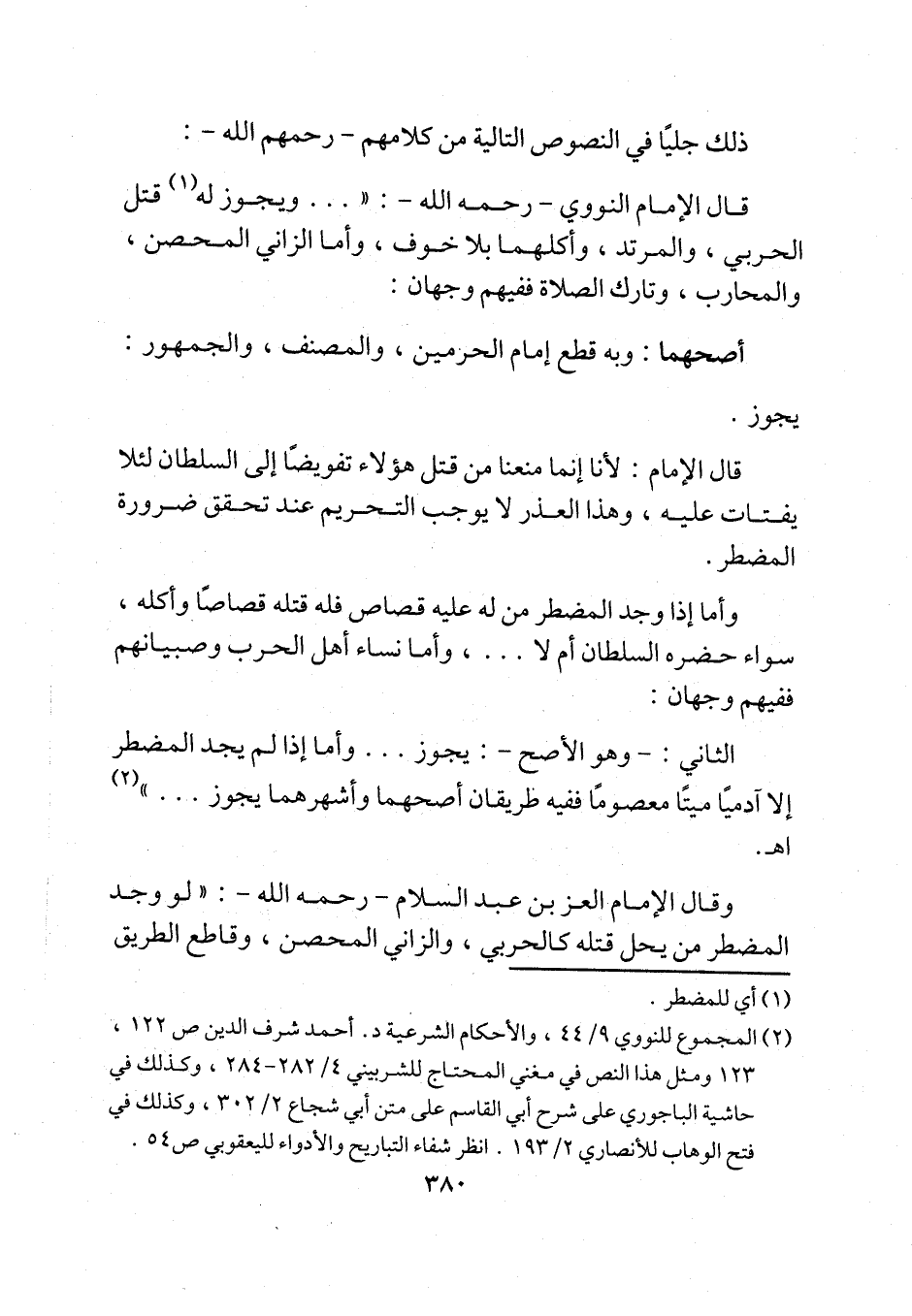 (¬2) المجموع للنووي 9/ 44، والأحكام الشرعية د. أحمد شرف الدين ص 122، 123 ومثل هذا النص في مغني المحتاج للشربيني 4/ 282 - 284، وكذلك في حاشية الباجوري على شرح أبي القاسم على متن أبي شجاع 2/ 302، وكذلك في فتح الوهاب للأنصاري 2/ 193. انظر شفاء التباريح والأدواء لليعقوبي ص 54.