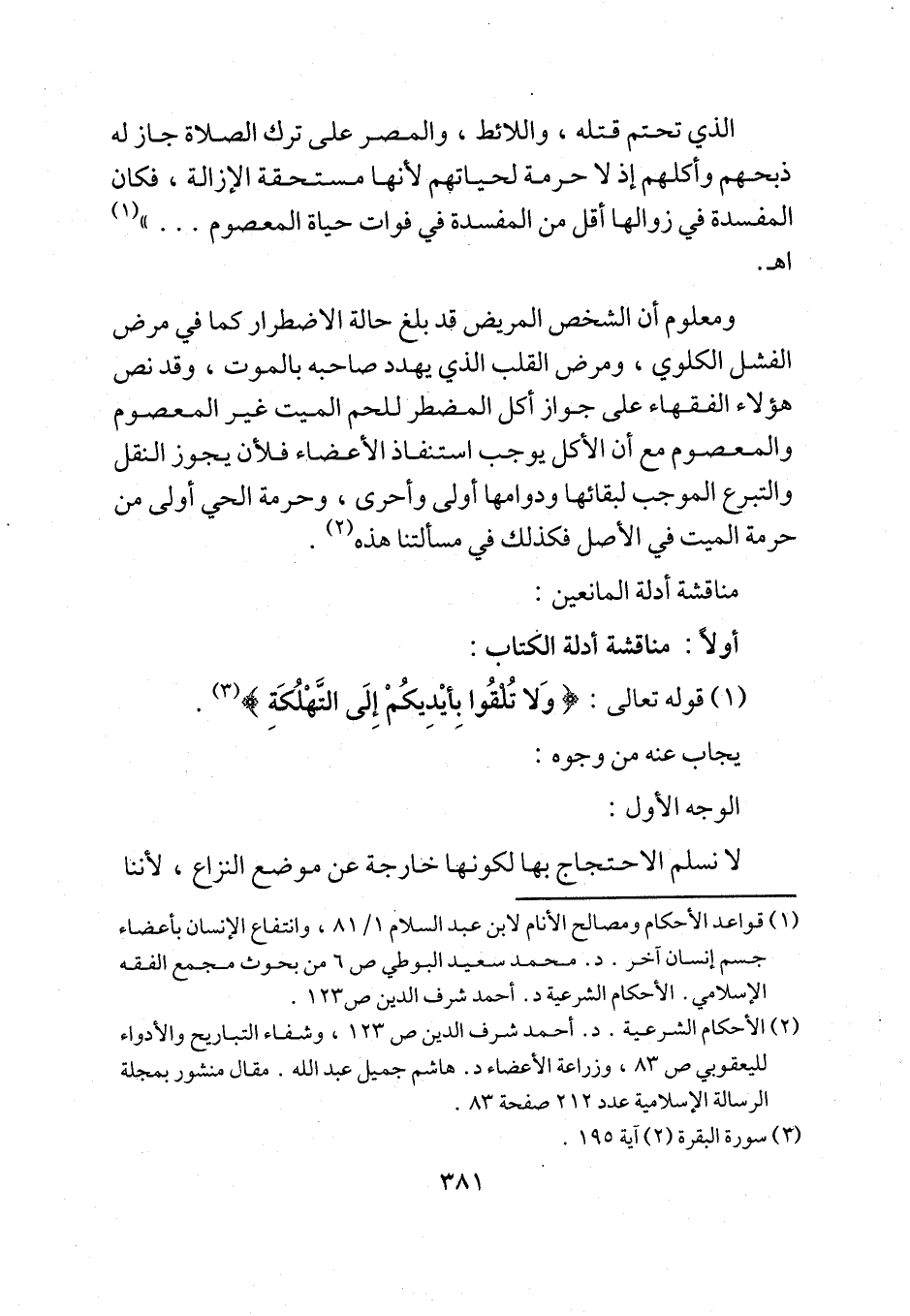 (¬2) الأحكام الشرعية. د. أحمد شرف الدين ص 123، وشفاء التباريح والأدواء لليعقوبي ص 83، وزراعة الأعضاء د. هاشم جميل عبد الله. مقال منشور بمجلة الرسالة الإسلامية عدد 212 صفحة 83.