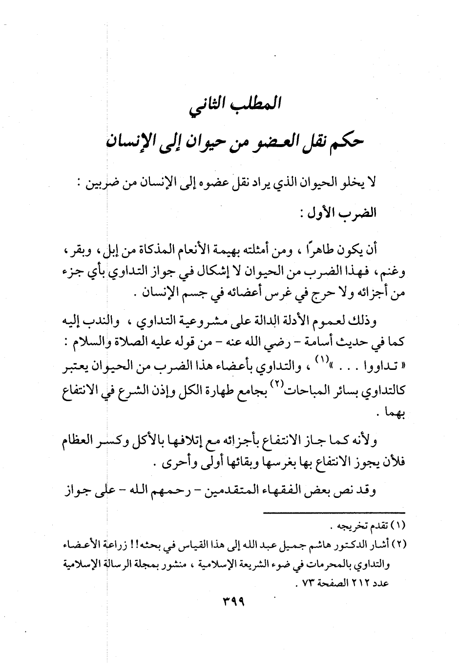 (¬2) أشار الدكتور هاشم جميل عبد الله إلى هذا القياس في بحثه!! زراعة الأعضاء والتداوي بالمحرمات في ضوء الشريعة الإسلامية، منشور بمجلة الرسالة الإسلامية عدد 212 الصفحة 73.