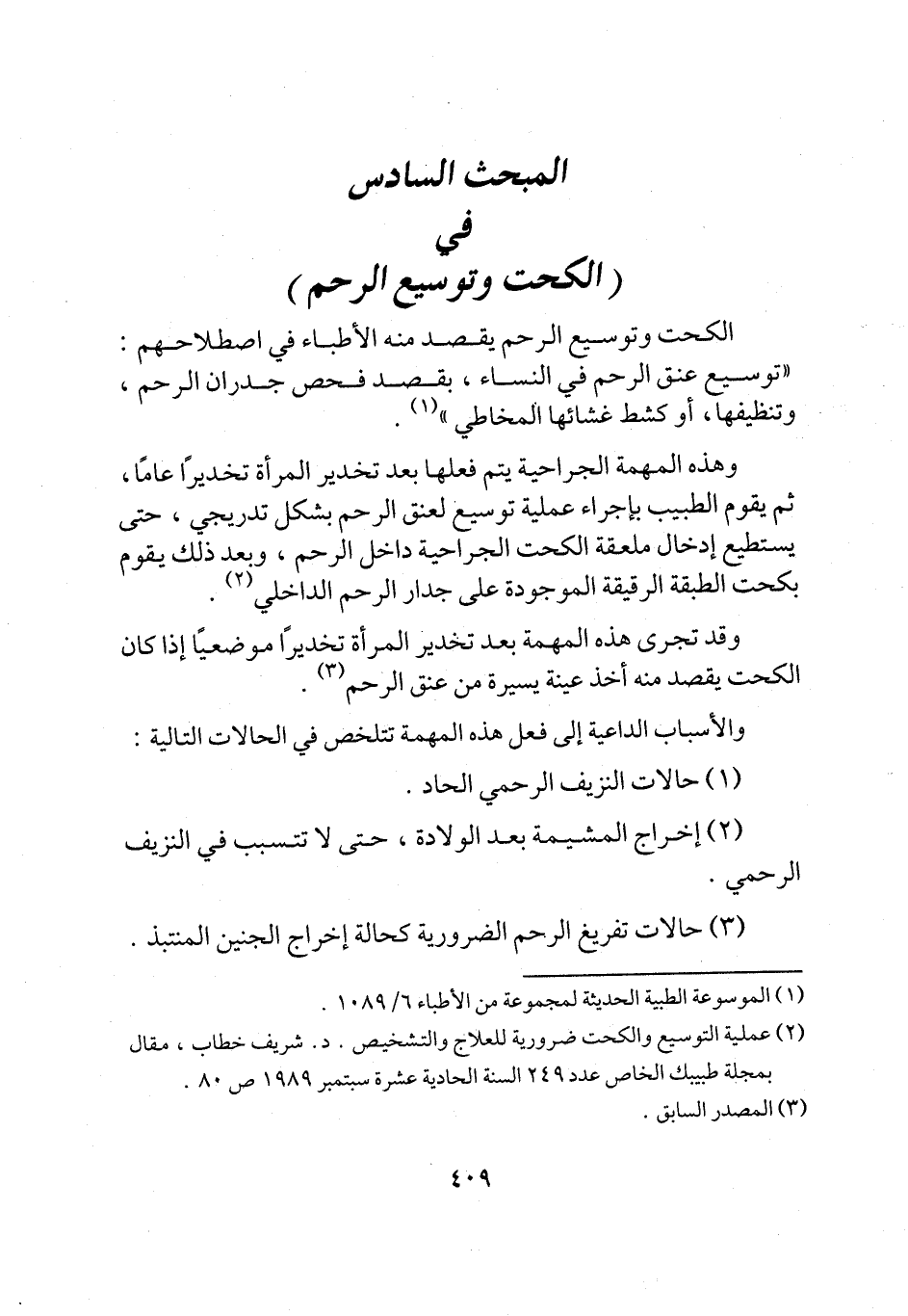 (¬2) عملية التوسيع والكحت ضرورية للعلاج والتشخيص. د. شريف خطاب، مقال بمجلة طبيبك الخاص عدد 249 السنة الحادية عشرة سبتمبر 1989 ص 80.