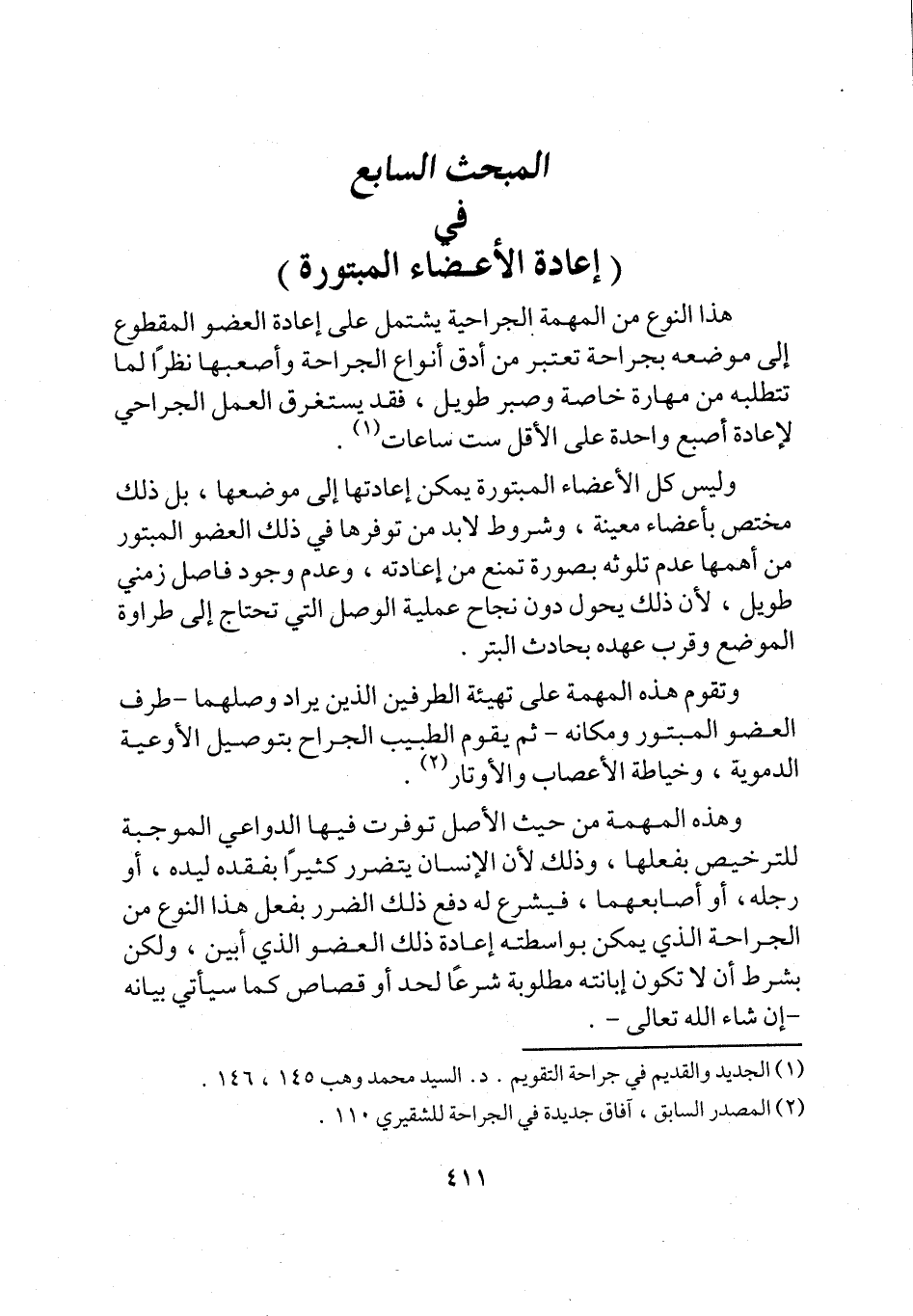المبحث السابع في (إعادة الأعضاء المبتورة)
