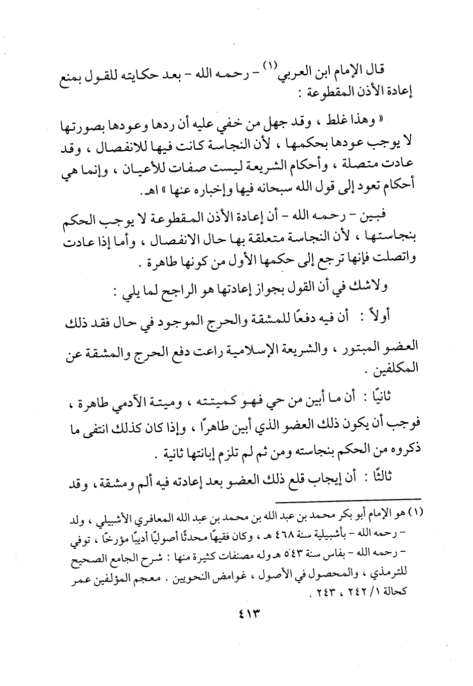(¬1) هو الإمام أبو بكر محمد بن عبد الله بن محمد بن عبد الله المعافري الأشبيلي، ولد -رحمه الله- بأشبيلية سنة 468 هـ، وكان فقيهًا محدثًا أصوليًا أديبًا مؤرخًا، توفي -رحمه الله- بفاس سنة 543 هـ وله مصنفات كثيرة منها: شرح الجامع الصحيح للترمذي، والمحصول في الأصول، غوامض النحويين. معجم المؤلفين عمر كحالة 1/ 242، 243.