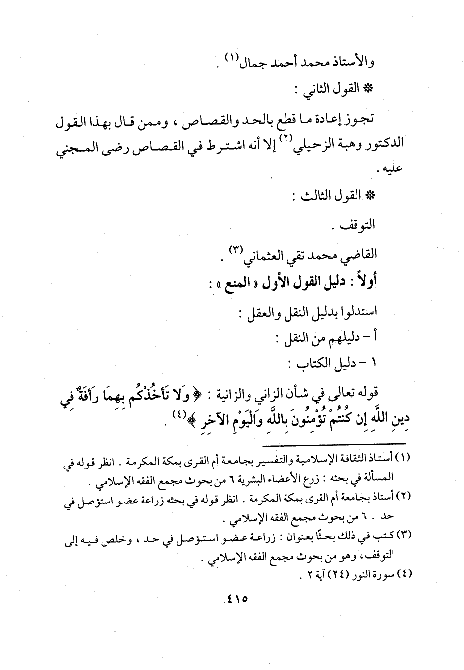 (¬3) كتب في ذلك بحثًا بعنوان: زراعة عضو استؤصل في حد، وخلص فيه إلى التوقف، وهو من بحوث مجمع الفقه الإسلامي.